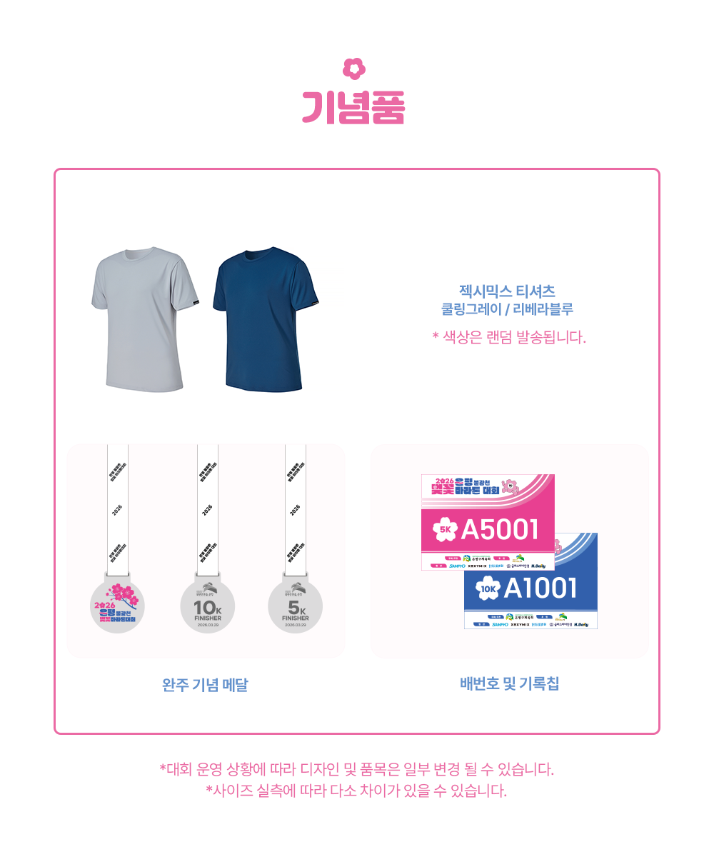 | 안전사고에 대한 책임 | - 대회 도중 참가자 본인의 건강 상의 문제로 인해 발생하는 제반 사태에 대해서는 참가자의 책임입니다. - 주최측은 참가자를 위해 주최사배상책임공제에 가입하지만, 보험 약관에 의한 사항 이외에는 경기 중 발생한 부상, 사망, 사고 등에 대해 응급 조치 외 어떠한 책임도 지지 않습니다. - 대리참가자(양도포함) 또는 미등록자의 부상 등 사고 발생시 모든 책임은 본인에게 있으며, 사무국은 아무런 책임을 지지 않습니다. |
